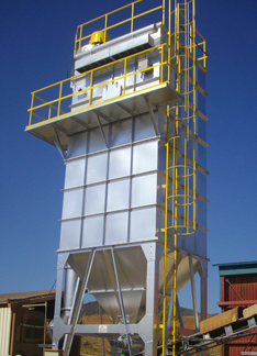 集じん機とは、ケージング内に複数収納されたバグフィルターにより空気中に含まれた粉塵を効率よく補集し合塵空気を清浄する装置です。